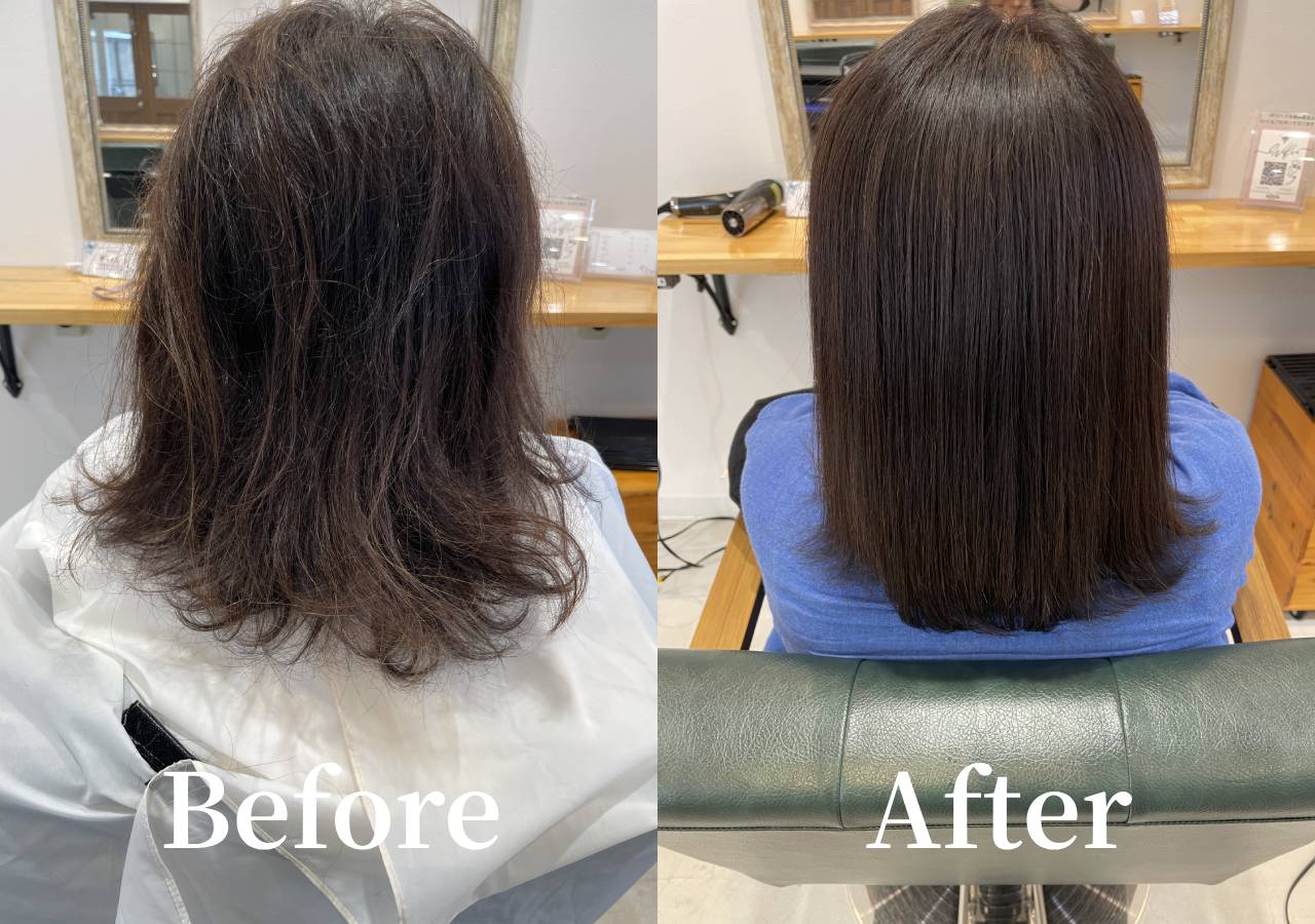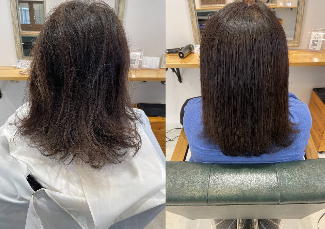 髪質改善でも広がりやウネリを抑えてくれます。ダメージやパサつきもしっかり補修します。