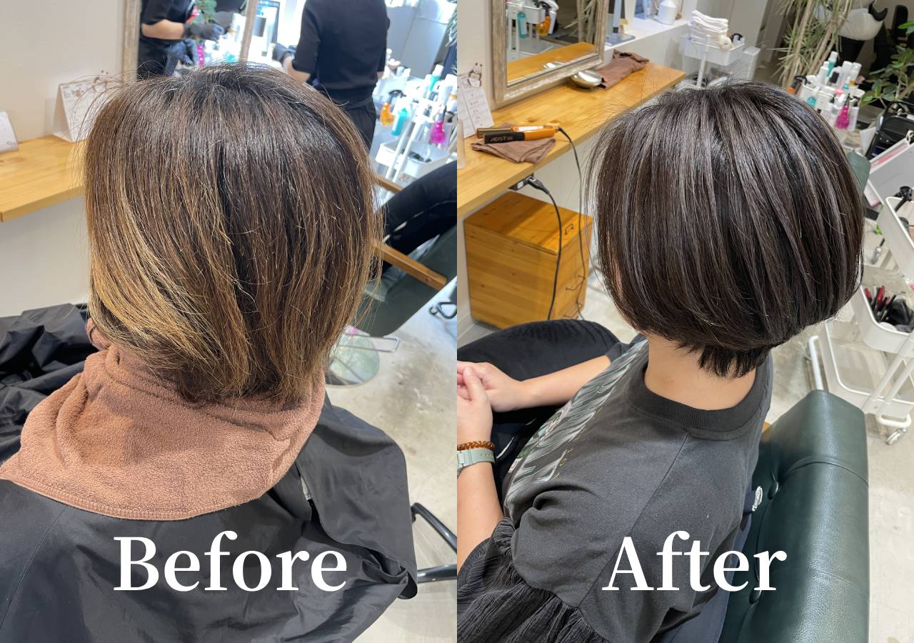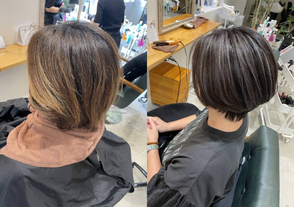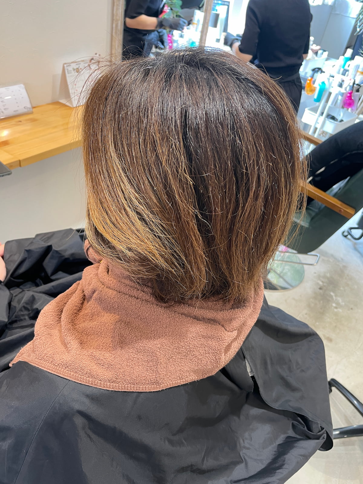 ・ 白髪染めの暗い髪色が明るい髪色になれた